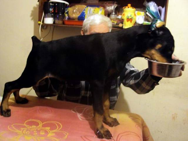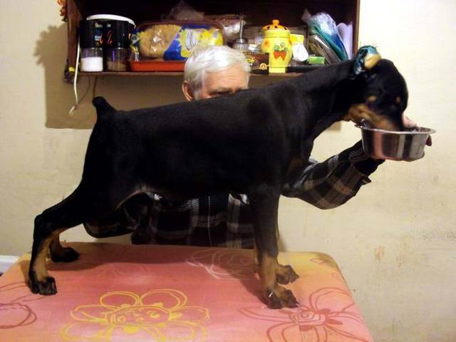 | Красивый щен, и хвостик аккуратный. Так я и не собрался в Россию за щенком, жена на третьем месяце, придется отложить года на 2 Нина Константиновна, с наступающим Вас, здоровья сил и хороших добиков. Не теряю нажежды приобрести у в Вас щенка.